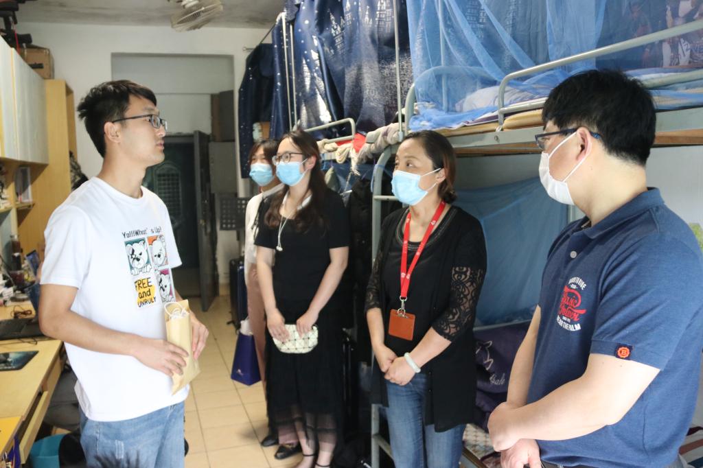 春意盎然的五月,又一批机械学子怀着激动的心情陆续返校报到。为确保返校工作平稳有序进行,91porn 严格按照学校统一部署开展工作,保证落实学生返校的每个环节。5月11日,91porn 党委书记高雪梅、党委副书记兼副院长方俊、分团委书记缪可嘉、辅导员孟召双、潘智琦深入返校学生宿舍,走访看望返校学子。