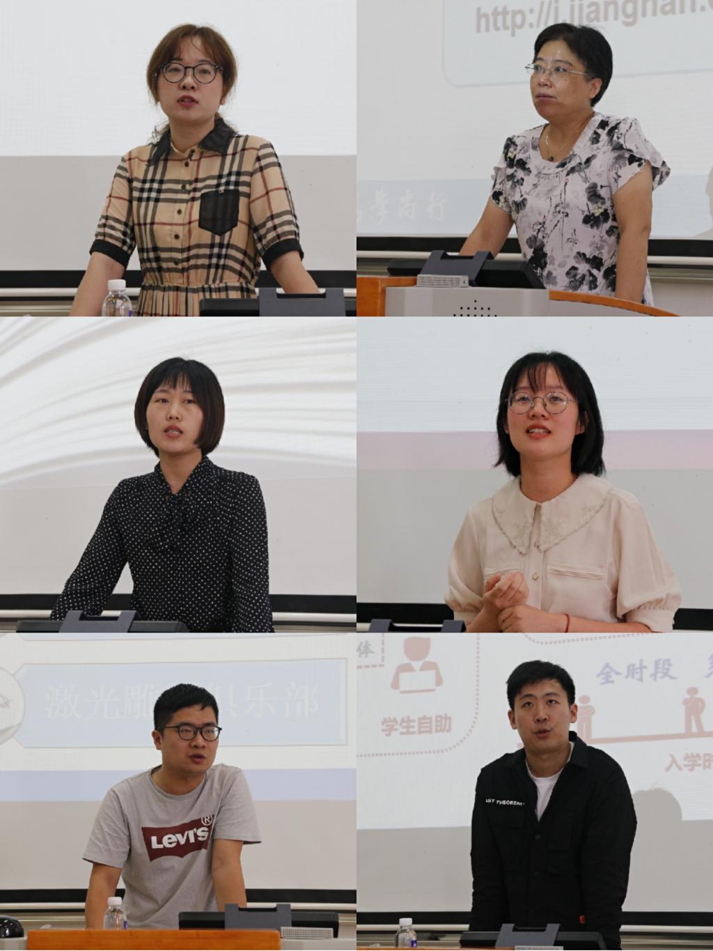 接着,沈贤为新生细致讲解了学校学籍方面的相关制度,提醒学生在高校要具备主动意识,定期在相关网站查询信息,避免因个人疏漏影响学业节奏。各辅导员则结合自身负责的条块工作向新生宣讲最新政策,为新生提前感知大学方方面面内容作指引。缪可嘉介绍学院团工作,强调第二课堂的重要性,希望学生能重在平时,丰富大学生活;研究生辅导员孟召双进行学生党员发展工作介绍,现场互动回答学生关于入党流程中的疑问;2017级辅导员孟飞则介绍了学院学科竞赛的开展情况,鼓励学生积极参与,全面提升能力,国际交流则侧重于引导学生扩展视野,勇于走出去,适应国际化潮流;2018级辅导员张舒通过互动小游戏引导学生认知到高情商的重要性,希望大家尽快融入宿舍和班级;君远学院辅导员高鑫解读新生资助政策,让学生了解到国家、社会以及院校对于他们的关心关爱,体育工作方面则倡议学生动起来,强调强健体魄是一切的基础。