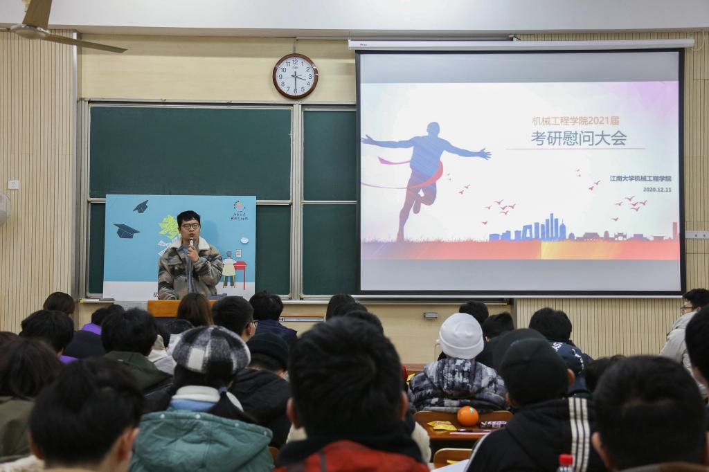 于第一教学楼A114教室举行2021届考研学生慰问大会。学院党委书记高雪梅、分团委书记缪可嘉、研究生辅导员孟召双、班主任钱陈豪,2021级的考研学生出席。慰问会由2017级辅导员孟飞主持。
