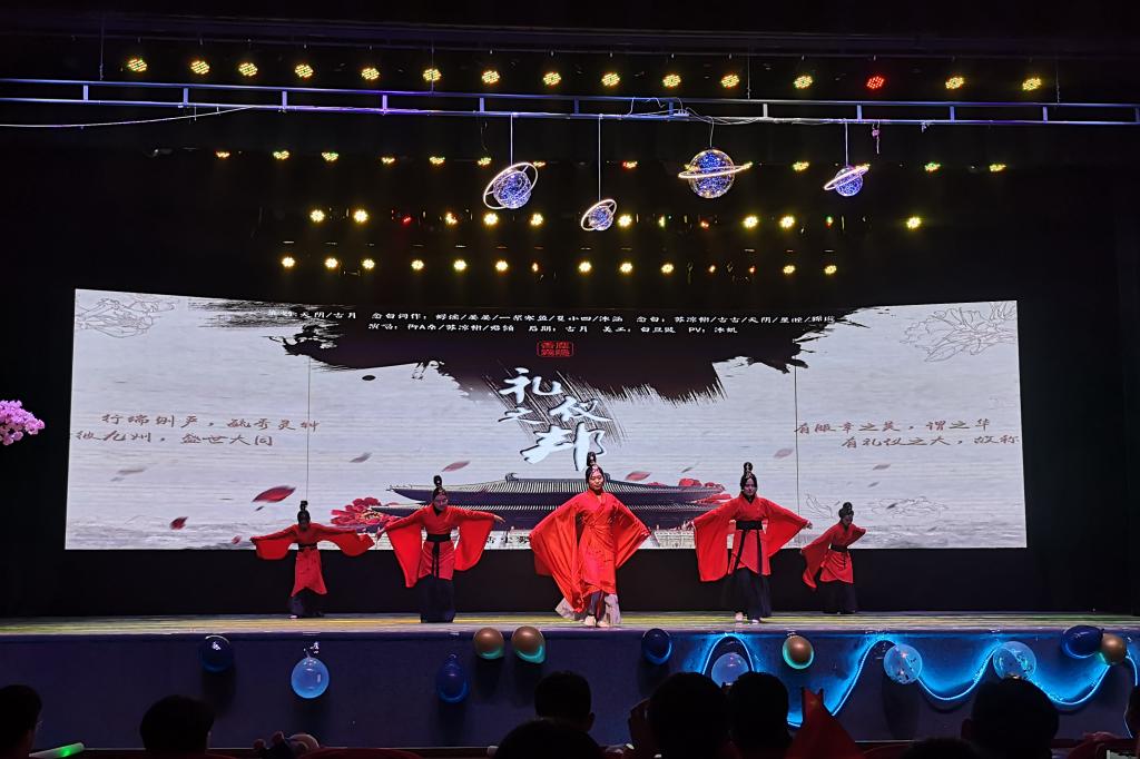 晚会在勿氧乐队的乐器演奏中拉开帷幕,舞蹈《天选之城》紧随其后点燃全场,拉开晚会盛宴的帷幕。十佳歌手梁肖瑶、兰康带来的《I Love You 3000》歌声优美,旋律动听,令全场观众沉浸其中;相声《报菜名》,捧逗俱佳,令观众捧腹大笑;由教师带来的歌曲串烧和走秀,引来学生的连连掌声,全场学生为走下讲台站上舞台的老师们喝彩呐喊;过程2001班的诗朗诵《我们一起走过,奔向远方》,在优雅钢琴声和袅袅古筝音的烘托下,生动的讲述了中国的抗疫故事,歌颂了我国的抗疫精神。最后,伴随君远师生的大合唱《我和我的祖国》,晚会在一片欢声笑语中落下帷幕。