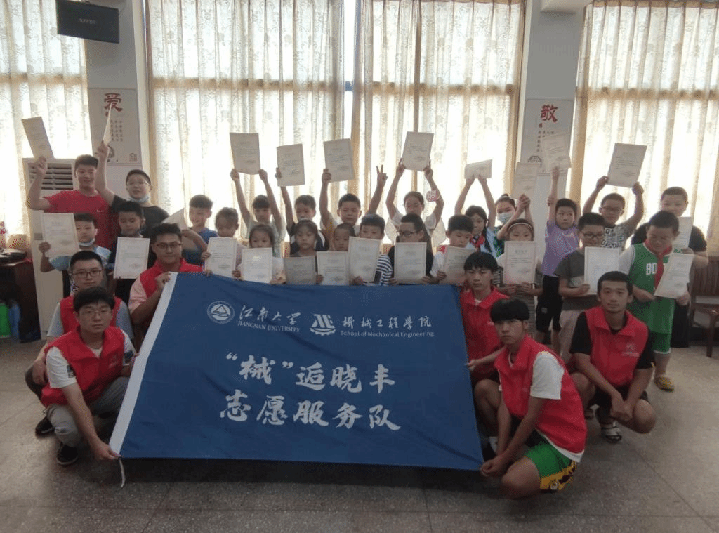 “械逅”实践团的感谢,结营仪式上晓丰社区的工作人员给团队成员颁发了证书和礼物。自2021年暑假起,“械逅”实践团利用暑期、周末等课余时间,与无锡乡镇社区保持紧密联系,关注青少年成长,用实际行动践行青春责任,充分展现江南学子的时代责任与担当。本次暑期夏令营已经拉下帷幕,但他们在“青少年关怀”的志愿服务道路上将继续向前。