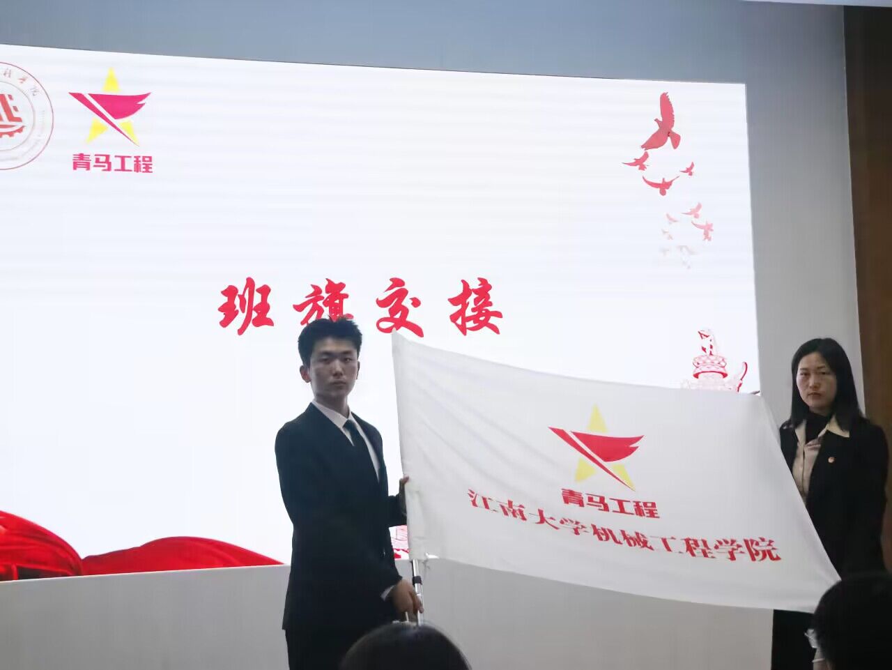 宣誓环节中,辅导员潘智琦带领全体学员宣誓。“坚定马克思主义信仰,做新时代中国特色社会主义合格建设者和接班人,坚持实学实干,促自我全面发展……”铿锵的誓言饱含了在场青马学员的坚定信念。接着,孟召双向培训班班长魏晓枫授旗。
