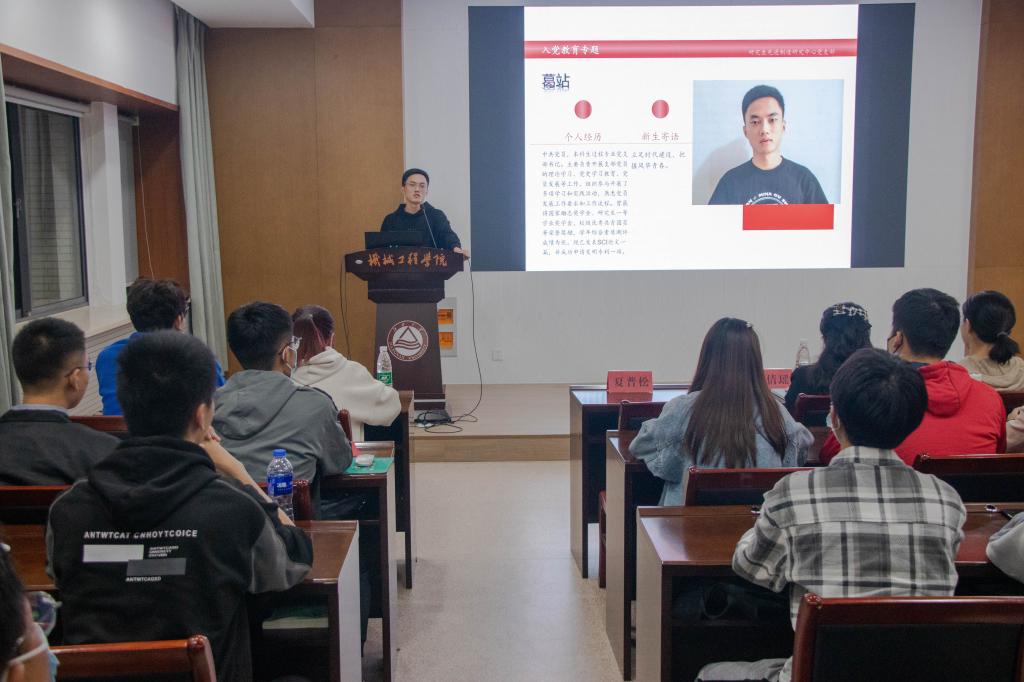 入党知识板块由本科生过程专业党支部书记葛站等4名同学主讲,他们为新生讲述了中国共产党的诞生与成长,并以“为什么要加入中国共产党”、“怎么加入中国共产党”、“加入中国共产党需要具备哪些条件”三个问题为基点,加强了同学们对党的认识,帮助新生端正入党动机,坚定入党信念。