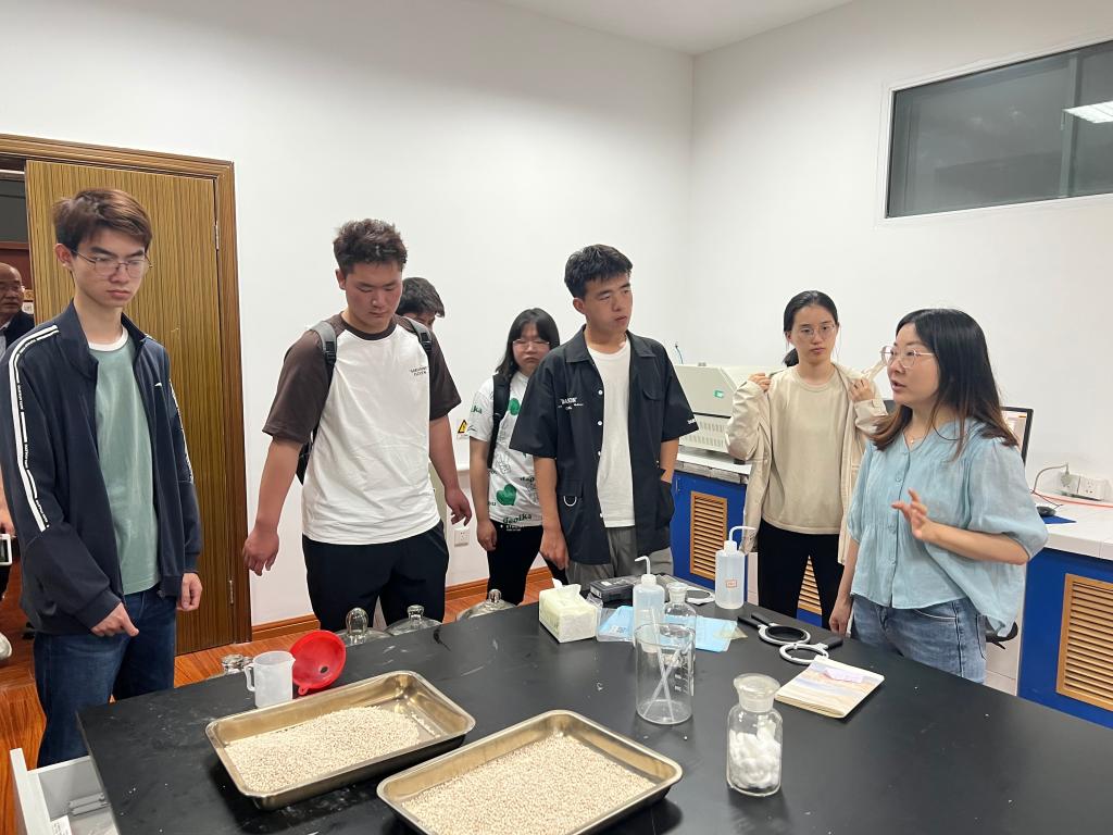 作为参观的第二站,包装材料实验室中卢莉璟老师向学生介绍了检测包装工艺的各类设备及包装专业的相关研究内容;食品加工单元内,夏晓露老师为学生讲解了应用于食品加工过程的诸多设备,及设备工作的原理、研发中的技术难点,例如自动包饺子机器人等。