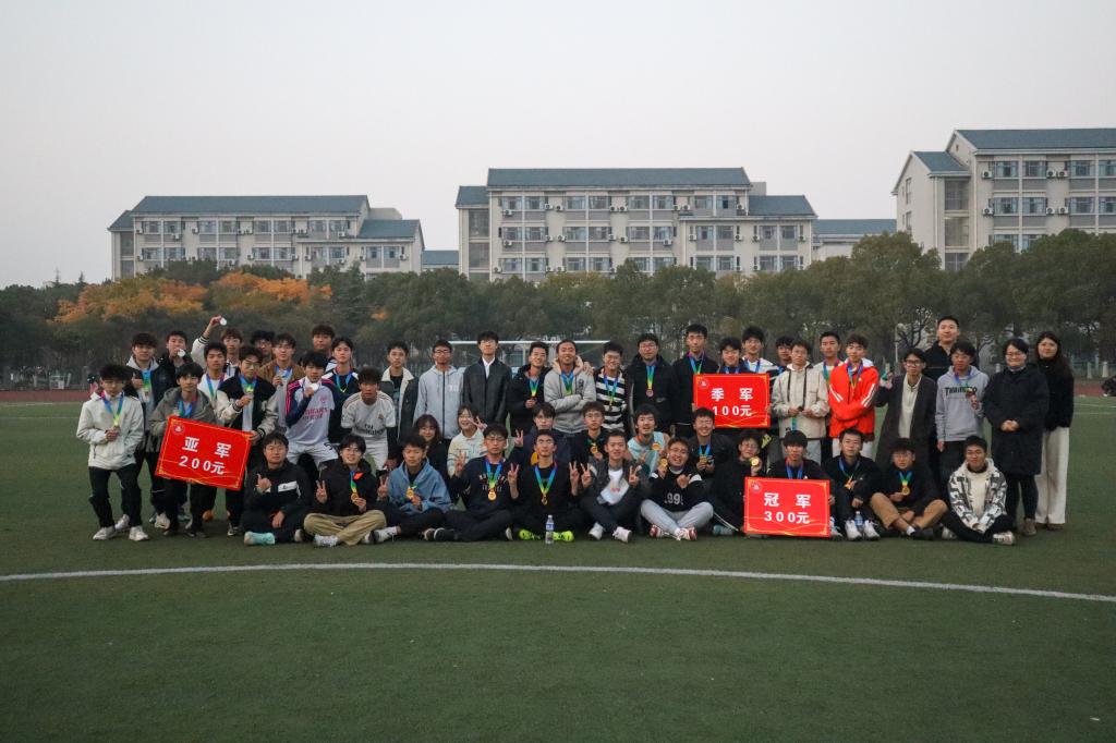 颁奖仪式上,老师们为金秋足球赛获奖队伍及最佳射手颁奖。机械五班、机器人一班、机械四班分获冠亚季军,金健豪获最佳射手。