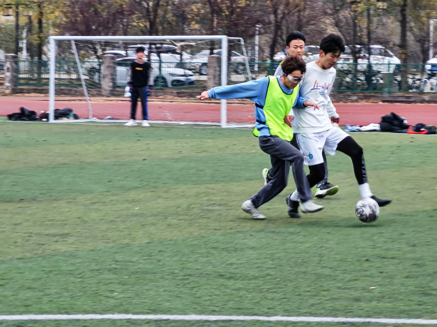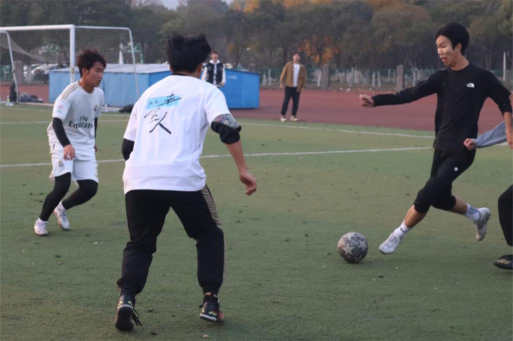各班的足球健儿们时而控球过人,时而滑铲阻球,时而铆力射门。各选手不甘示弱,充分展现了机械学子勇争第一的竞技精神。
