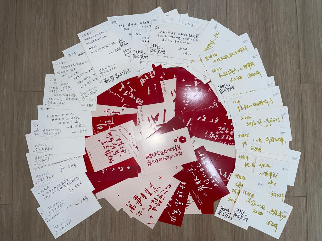 现场老师们为考研学子发放“考研助力包”并送出诚挚祝福。定制礼包中装有七件暖心礼品,祝福满满:一套涂卡笔,祝愿“妙笔生花”;一瓶咖啡,祝愿“啡”同凡响;一盒牛奶,祝愿“牛气冲天”;一颗橙子,祝愿前“橙”似锦;一板巧克力,祝愿“巧克”难题;一袋蛋糕,祝愿“步步登高”;一张祝福卡,承载着机械学院师生们对大家满满的祝福,它们均由班主任老师们用心手写。