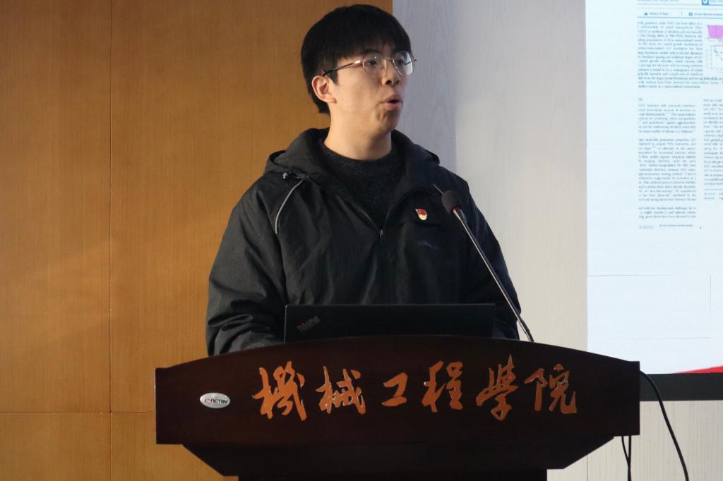 ,本科期间参与工程实践与创新能力大赛获全国银奖。他从精益求精在竞赛实践中寻求突破的经历讲起,分享了从本科到研究生的身份转变与适应过渡,鼓励大家以平常心面对生活中的各种困难与瓶颈,不退缩、敢担当,以积极心态突破自己,成长成才。王鹏飞荣获2022-2023年度国家奖学金,是一名全面发展的机械体育人,本硕期间共斩获校运会金牌11枚。他分享了“无体育,不机械”的成长故事,讲述了机械田径队从低谷到壮大再到突破的历程。他认为体育对机械学子意义重大,不仅体现在强健体魄,更体现在磨练意志、坚定目标、敢打敢拼、团队配合的体育精神,鼓励大家成为有韧性的机械青年。彭鑫硕士期间发表论文两篇,授权发明专利一项,参与国家自然科学基金等项目,现已签约远景能源,投身新能源风电行业。他介绍了自己的研究方向,分享了自己在科研与就业中立足国家需求、投身智能制造的选择。他认为青年成长中最重要的是锻炼发现问题、分析问题、解决问题的能力,以及着眼国家需要、将个人成长融入社会发展全局的担当。