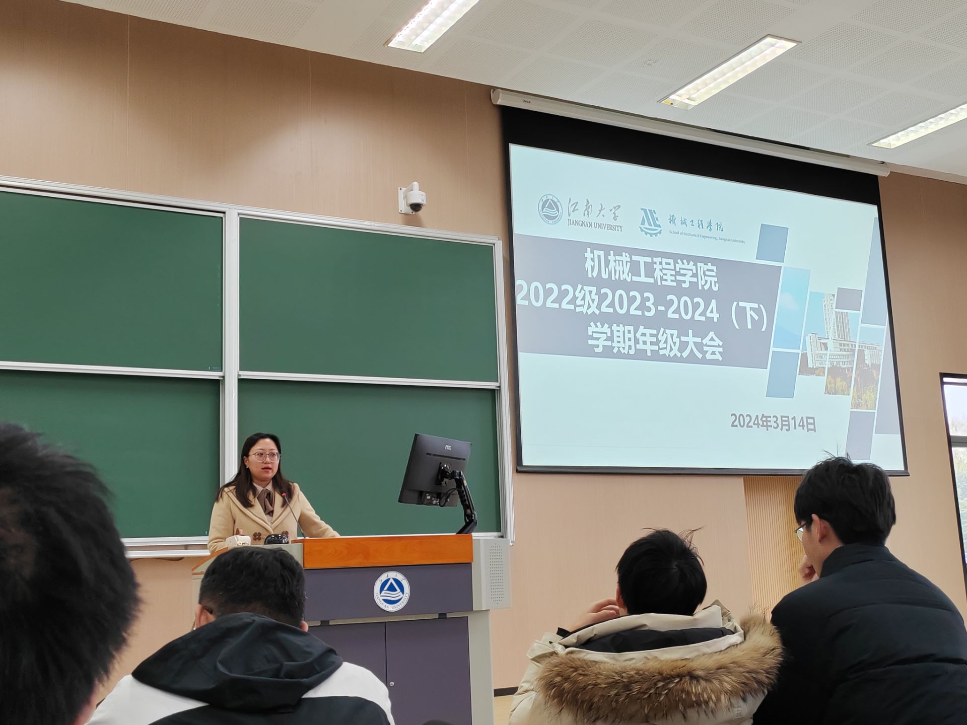 沈贤从学籍管理、重修选课、培养方案三方面为各年级年级进行了详细解读,她现场演示选课页面,指导学生熟练使用教务系统,重点提醒同学们仔细阅读培养方案,关注教务处官网的选课教学信息,注意时间节点,避免错选、漏选。辅导员潘智琦、何涛针对不同类别毕业意向学生从升学、就业、留学、入伍等方面分类开展分类具体指导;余骏皓、刘子琪、高鑫面向大三学生就不同专业往届毕业生去向进行解读分析,助力学生规划未来;张倩瑶、宋京姝面向大二学生讲解了创新创业训练学分与第二课堂学分认定政策,鼓励同学们新学期发扬良好学风,互帮互助,共同进步;萧欣彤着重强调了在大一打好高数、物理、英语等基础课程的重要性,鼓励同学们保持体育锻炼,注意自身情绪波动,懂得及时求助、学会自我调节。