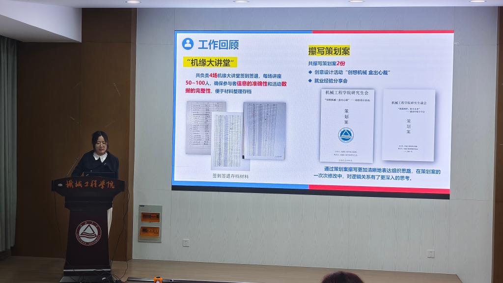 研究生会在机械楼C302召开第九届研究生会学生骨干述职评议会,并进行首届“星承计划”面试。学院学工办主任兼分团委书记孟召双、第九届研究生会全体成员参会。