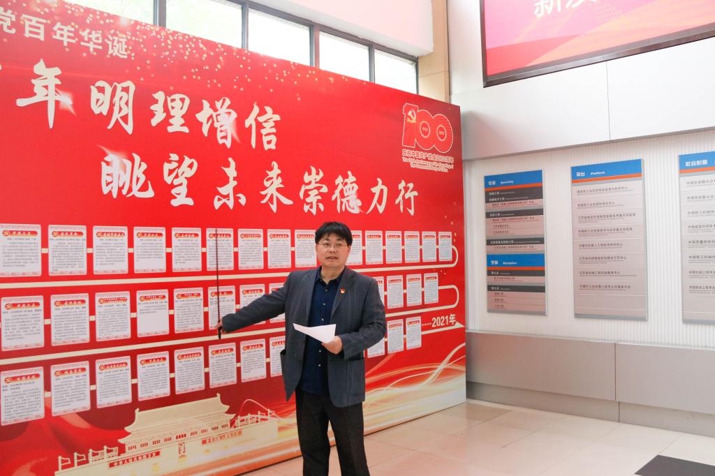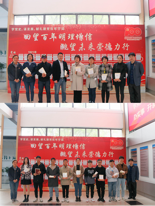 随后,与会党员移步学院一楼大厅,在“回望百年明理增信 眺望未来崇德力行”党史墙前举行“百名党员讲党史”启动仪式,为师生支部书记颁授百名党员讲党史相关材料,学院党委副书记方俊作了第一讲。