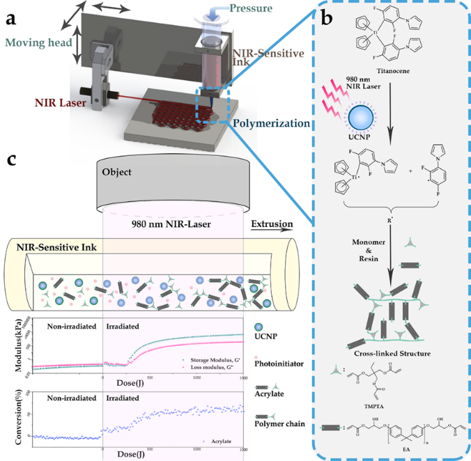 刘禹教授团队在3D打印技术取得进展。刘禹教授团队与化工学院刘仁教授团队合作,创新近红外辅助3D墨水直写增材制造技术,实现多色彩材料、跨尺度(μm - mm)部件3D打印,打破了传统增材制造方法的材料与制造精度局限性,有望加速3D打印技术在柔性传感、软体机器人与生物医疗领域的应用。相关成果在顶级期刊《自然·通讯》发表题目为“3D printing of multi-scalable structures via high penetration near-infrared photopolymerization. Nat Commun 11, 3462 (2020). //doi.org/10.1038/s41467-020-17251-z” 的科研论文。机械学院作为共同通讯单位,刘禹教授与刘仁教授为通讯作者,化工学院博士生朱俊哲为第一作者,91porn