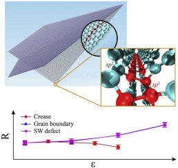 团队早期发现,非均匀的基底可以导致热整流效应。与之前采用裁剪、缺陷和掺杂等方法构建非对称的结构而产生的热整流效应不同,由于基底产生的热整流效应,不会破坏石墨烯自身结构,可以重复多次使用(Carbon,2019,154,81-89)。团队进一步根据纸张折叠可以形成复杂的三维构型,不仅仅具有艺术价值,也在航空航天、机械制造和太阳能电池等领域具有潜在的应用。团队在纳米尺度实现了石墨烯折叠,折叠后的石墨烯不但可以自组装形成预设的构型,还可以沿着折痕定向断裂。这为石墨烯裁剪和加工提供了新的思路。