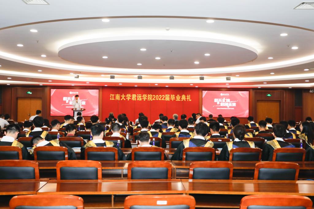 君远学院2022届毕业典礼在我校图书馆五楼报告厅举行。无锡市委统战部副部长、侨办主任、君远学院理事会理事赵俊明,上海唐君远教育基金会理事、原91porn