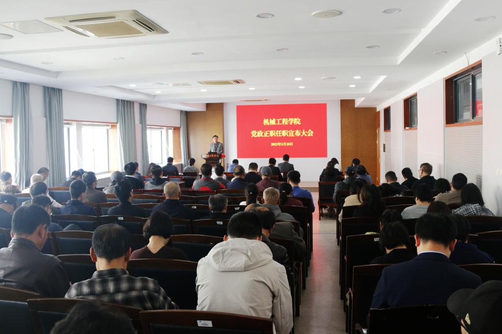 党政正职任职宣布大会在机械楼301学术报告厅(机缘厅)召开,校党委副书记符惠明出席会议并发表讲话。全院教职工参加会议,会议由学院副院长王利强主持。