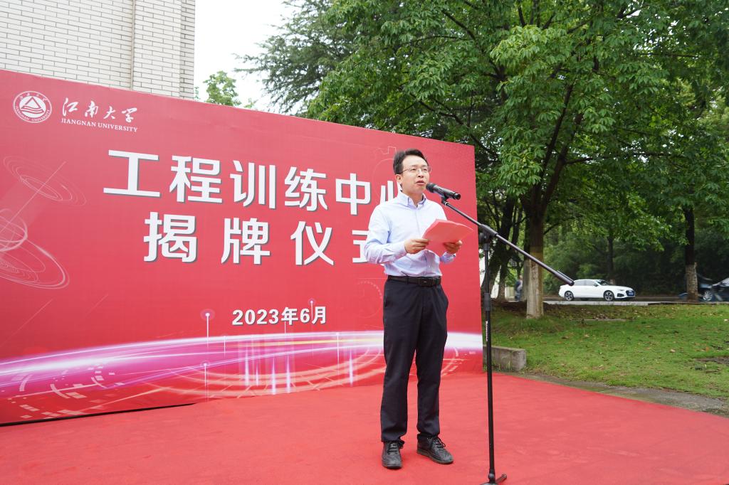 接着,李兆丰代表相关职能部门致贺辞,对实习工厂更名为工程训练中心表示祝贺!他指出,随着新的经济社会发展所需要的“新工科”建设人才培养的要求不断提升,围绕培养学生实践动手能力和科技创新能力,不断加强通识性基础工程实践教学平台的设施与内涵建设的需求越发迫切,此次更名不仅关乎名称,更是教育理念、教学模式的再梳理、再进步,具有十分重要的意义。他希望,训练中心教师们能够以此为契机,积极探索新形势下工科人才培养的实践性教学平台建设与学生实践教育教学等新课题,为支撑学校工科人才培养质量的不断提高作出更大贡献。赵建新、周伟涛和与会嘉宾一起,共同为工程训练中心揭牌。