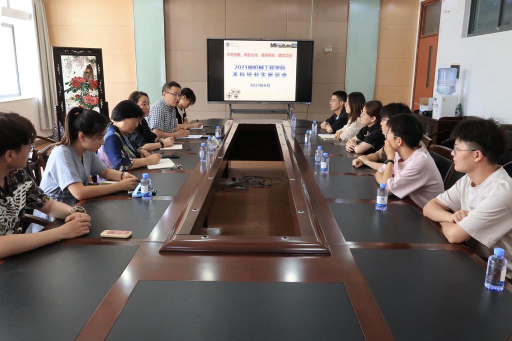 在C310会议室召开了“不负热爱、奔赴山河,勇担使命、建功立业”主题的2023届本科毕业生座谈会。学院党委书记高雪梅、副院长钱善华、分团委书记孟召双、教务办沈贤、辅导员萧欣彤,以及2023届本科毕业生代表出席座谈会。座谈会由钱善华主持。