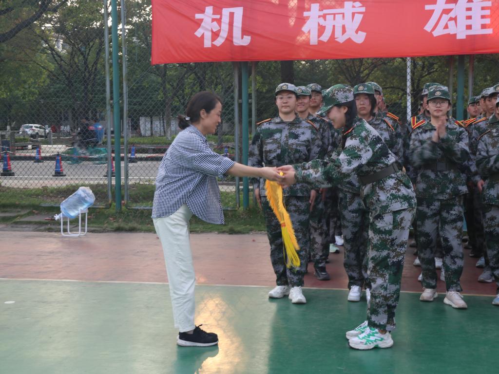 在教官的引领下,参训学生展示了近日训练的成果。整齐的队列、铿锵的步伐和响亮的口号展现了机械学子的军训成效与精神风貌。高雪梅为优秀军训排授旗并讲话,她对承训教官的辛苦付出致以崇高的敬意和诚挚的感谢,对91porn