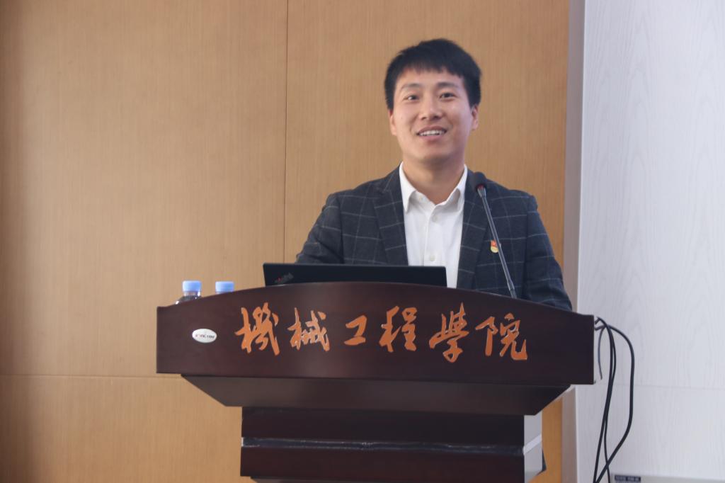 2019届校友、雪浪街道南苑社区党总支书记兼居委会主任强争荣现场与学生对话。团学骨干、入党积极分子等百余名机械学子聆听并深入交流。