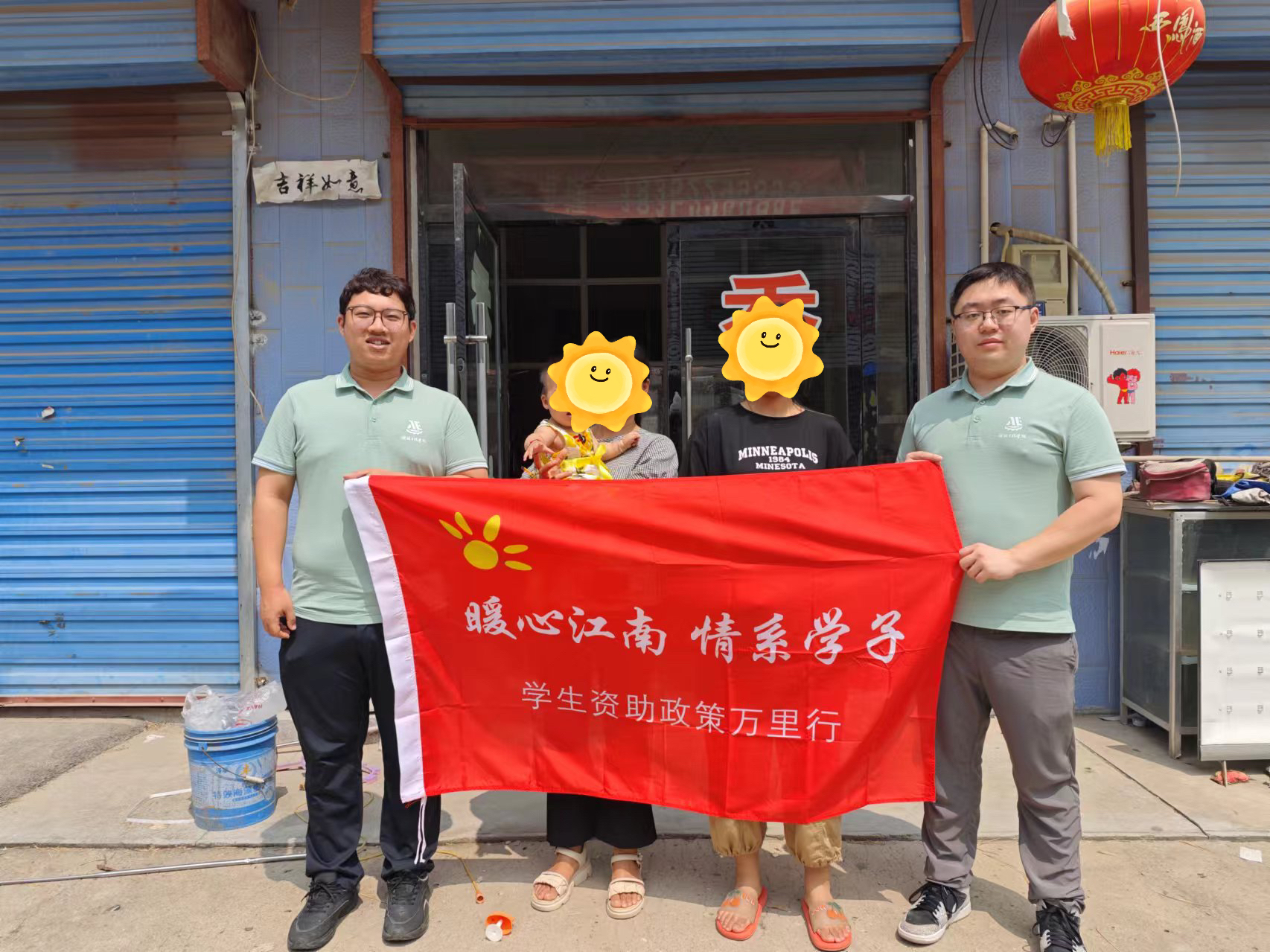资助政策宣讲团在辅导员张倩瑶、余骏皓、刘子琪的带领下,赴江苏省徐州市开展2024年暑期家庭经济困难学生家访暨“资助政策乡村行”活动。