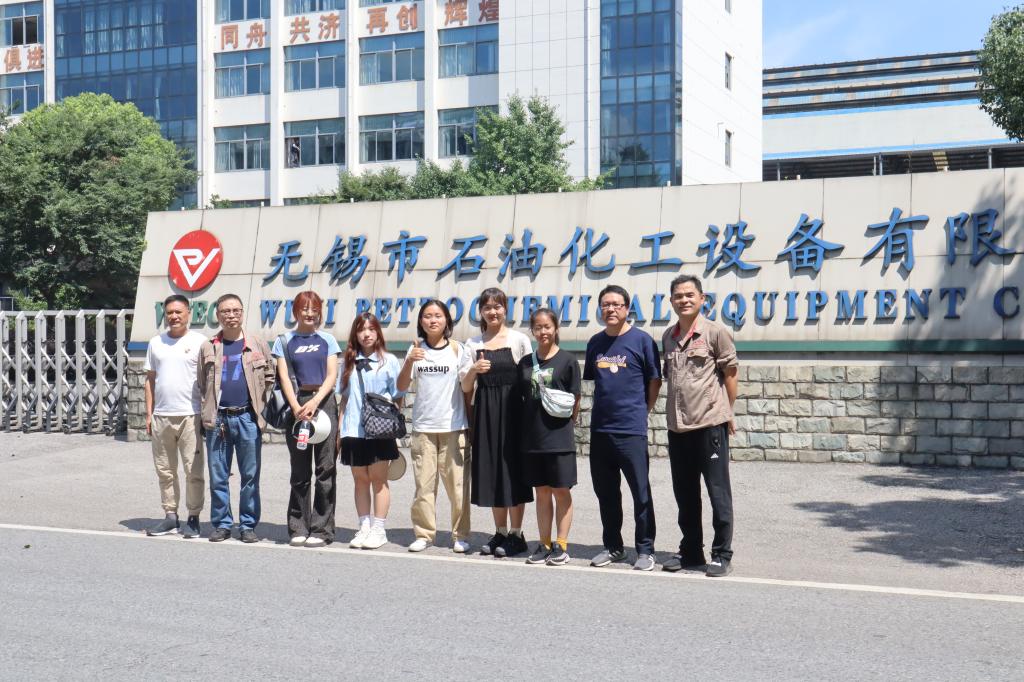 为了解行业前景,提前规划职业发展,“机‘鼋’巧合”就业实践团一行前往无锡市石油化工设备有限公司走访参观,企业董事长宣兴南、副总经理王晨秋、总检周涛、热处理部长马雄峰和党支部书记兼质量安全总监柳博参加本次活动。