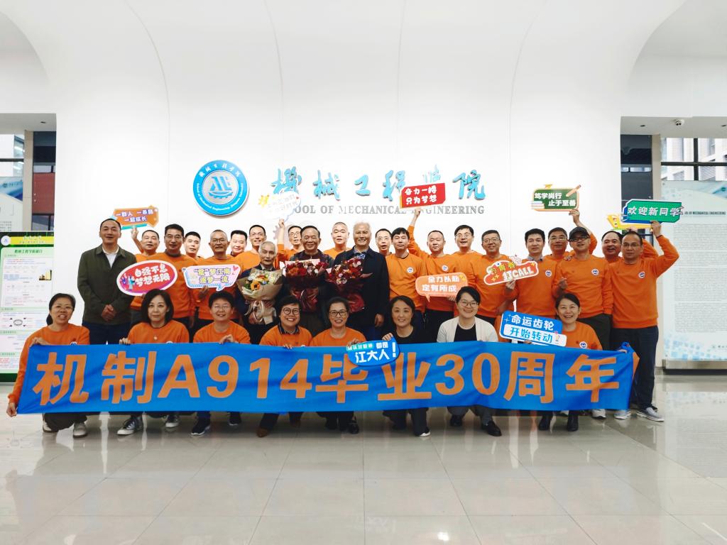 10月19日下午,机制A914班20余位校友毕业30周年重返母校,迎着纷纷小雨,身着定制的班服,校友们参观校园、座谈交流,重温往事,再叙情谊,正是雨打风吹情更浓,冒雨归来意未休。学院党委书记高雪梅、副书记刘升恒,以及教师代表许鹤群、徐伯清、章家祚、周文军等参加了座谈活动。