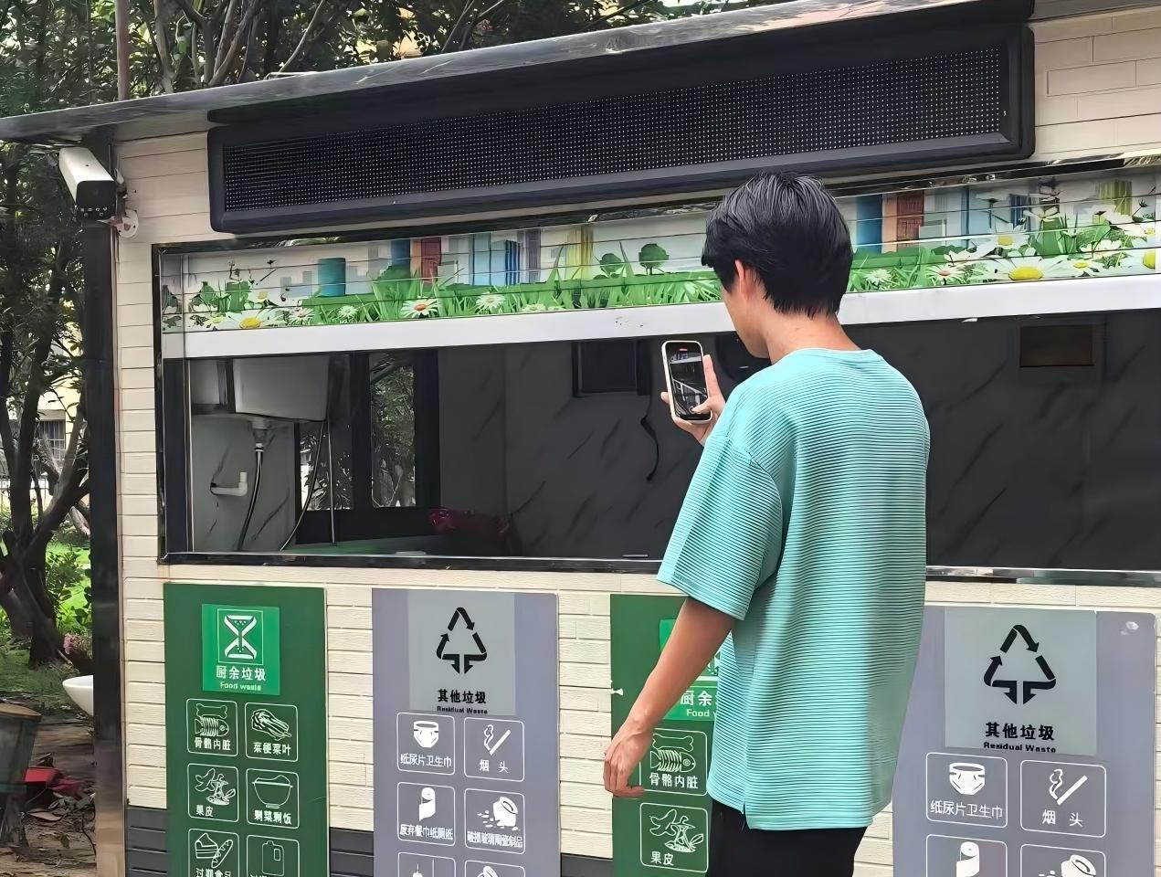 社区调研小分队拍摄垃圾分类投放点